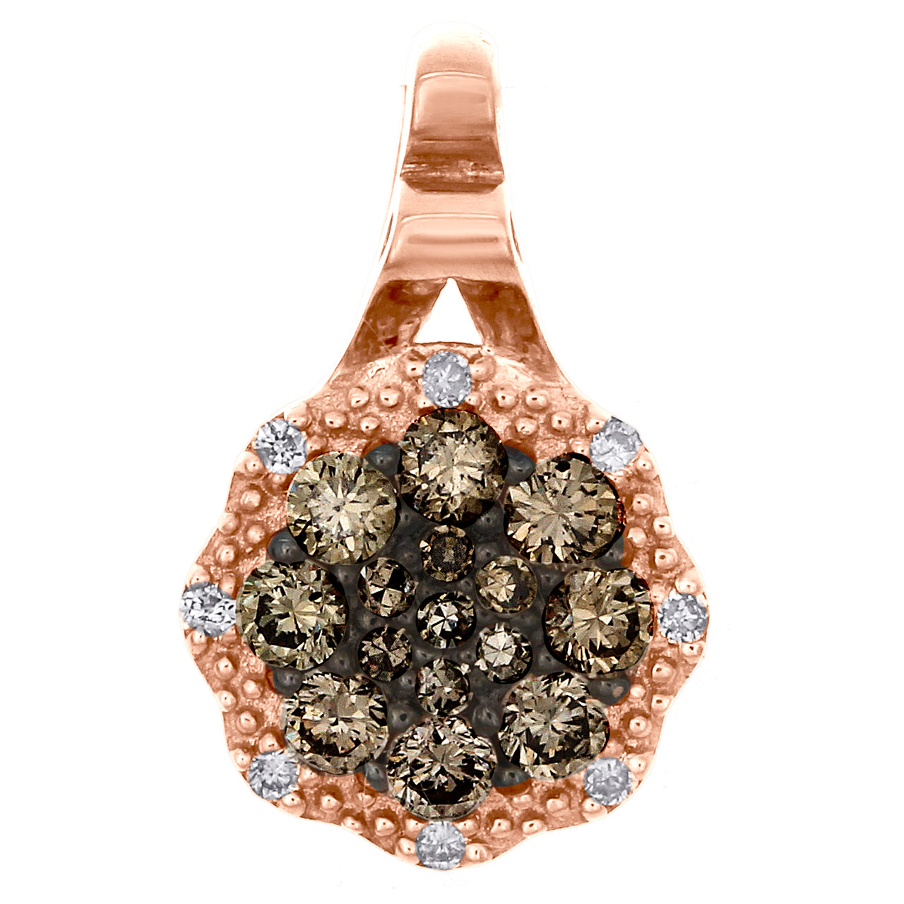 (1 gr. of 14K Rose Gold | Total Carat Weight: 0.25 ct. t.w. of White and Brown Diamonds | Length: 0.50" (including bail) | Width: 0.35" | Clarity: I1 - I2 | Color: H - I | Genuine Round White & Brown Diamond Statement Pendant Fashion Charm)