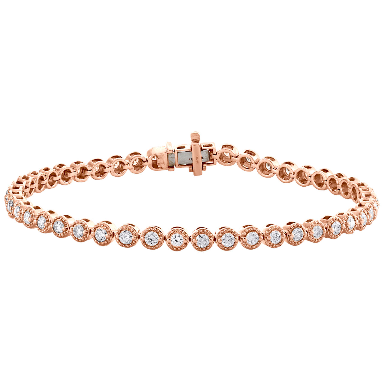 14K Rose Gold Round Diamond 3.75mm Milgrain Prong Set Tennis Bracelet 7" | 2 CT.