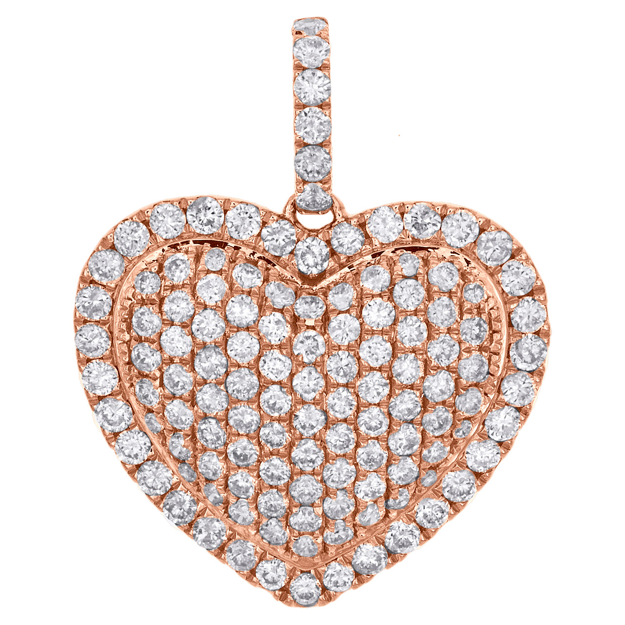(2.4 gr. of 14K Rose Gold | Total Carat Weight: 1.25 ct. t.w. of White Diamonds | Length: 0.90" (including bail) | Width: 0.75" | Thickness: 4.50mm | Clarity: SI2 - I1 | Color: H - I | Women's Genuine Round Diamond Heart Statement Love Pendant Pave Charm)