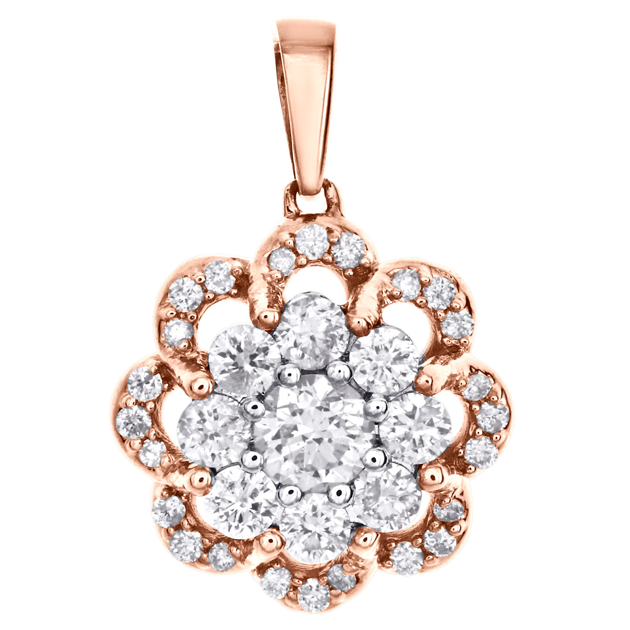 14K Rose Gold Solitaire Diamond Floral Halo Flower Pendant 0.65" Charm 0.50 CT.