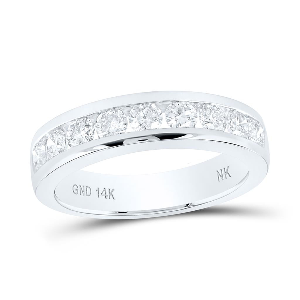 - 14K White Gold Channel Diamond Single Row Wedding Band Anniversary Ring 7/8 CT