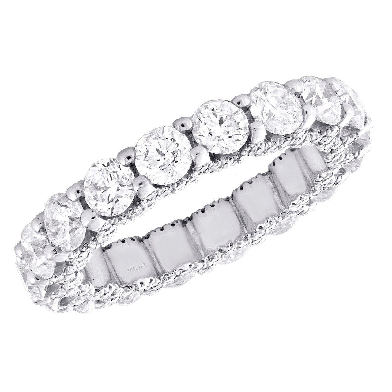 (5.2 gr. of 14K White Gold | Total Carat Weight: 3.65 ct. t.w. of White Diamonds | Band Width (shank): 3.50mm | Clarity: SI1 - SI2 | Color: G - H | Women's Round Diamond 3/4 Eternity Wedding Band Anniversary Ring)
