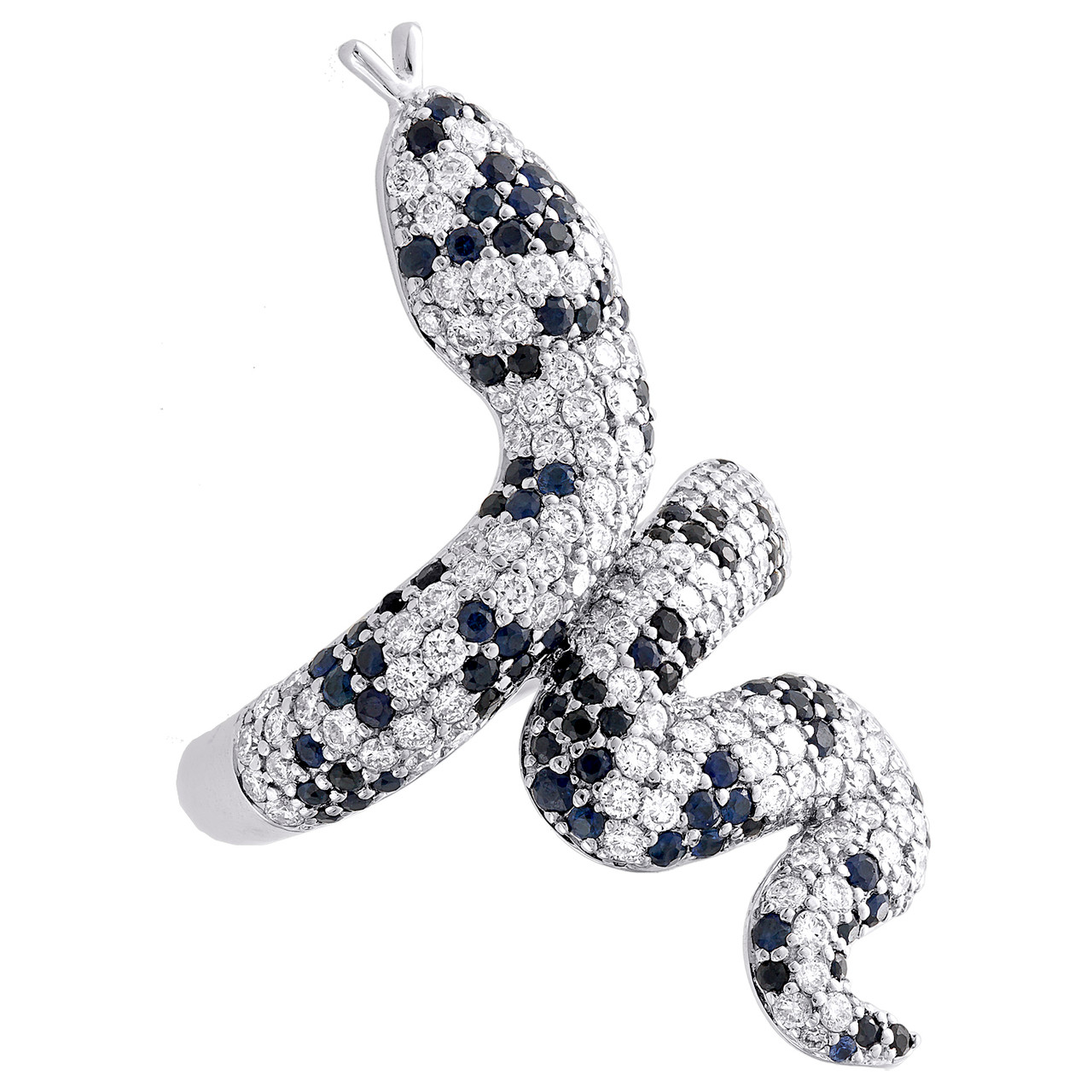 14K White Gold Diamond & Sapphire Gemstone Snake Right Hand Ring Band 2.42 CT.