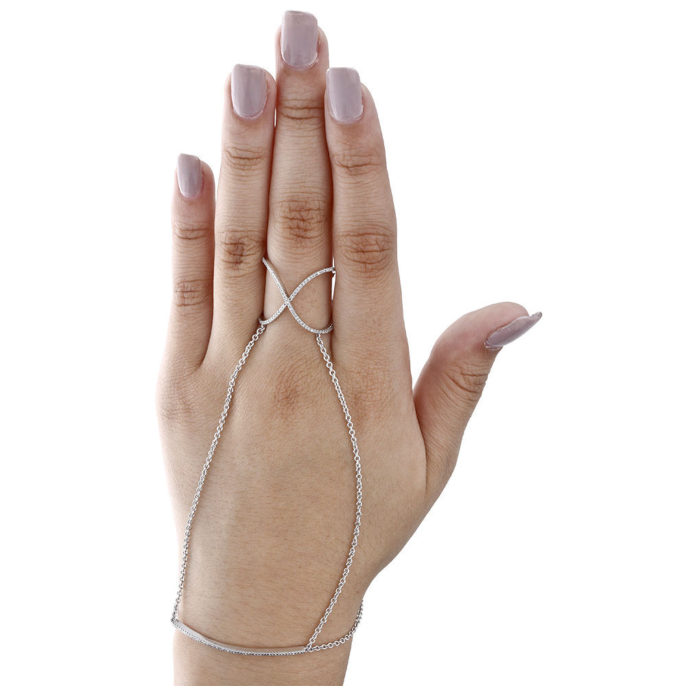 14k White Gold Diamond Slave Fashion Bangle Bracelet Ladies Criss Cross Ring