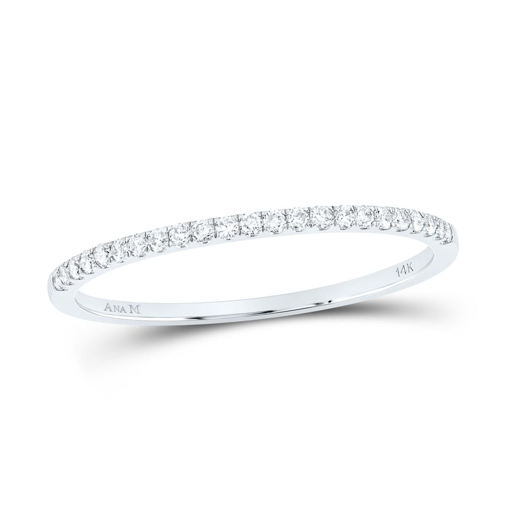- 14K White Gold Diamond Timeless Stackable Wedding Band Anniversary Ring 1/8 CT