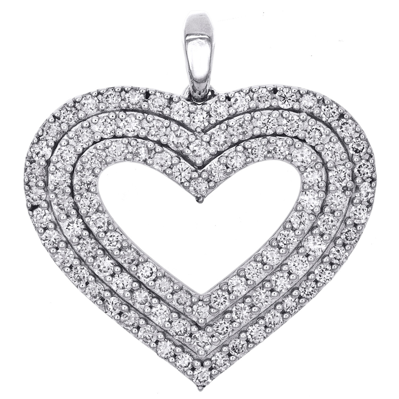 14K White Gold Diamond Triple Outline Heart Pendant 1" Statement Pave Charm 1 CT