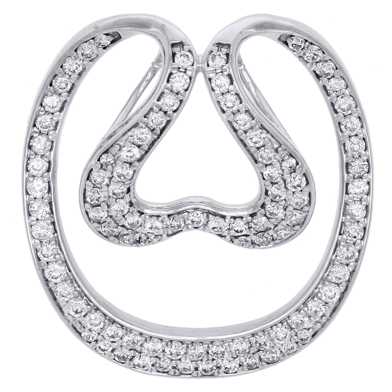 (3.4 gr. of 14K White Gold | Total Carat Weight: 0.75 ct. t.w. of white diamonds | Length: 1" | Width: 0.85" | Clarity: SI2 - I1 | Color: H - I | Women's Genuine Round Diamond Heart and Oval Border Slide Pendant Fancy Prong Set Charm)