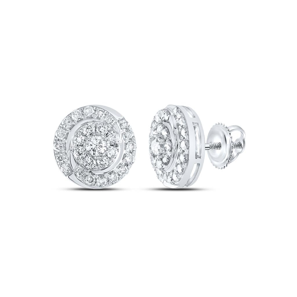 14K White Gold Genuine Diamond Unisex Cluster Swirling Round Stud Earrings 1 CT