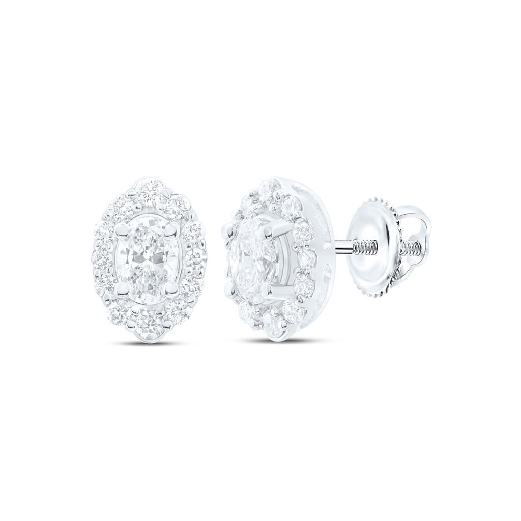 - 14K White Gold Genuine Diamond Unisex Solitaire Oval Halo Stud Earrings 1/2 CT