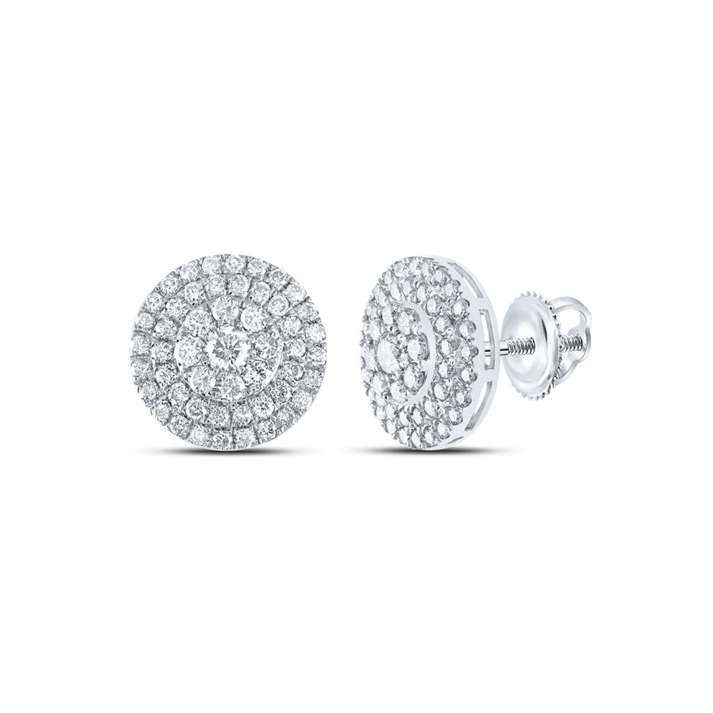 - 14K White Gold Genuine Diamond Unisex Tiered Halo Round Stud Earrings 1.50 CT