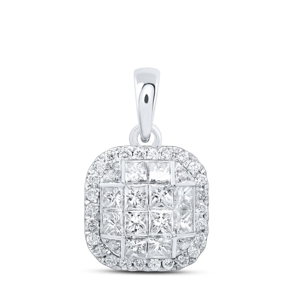 - 14K White Gold Princess Diamond Women's Square Pendant Cushion Charm 7/8 CT