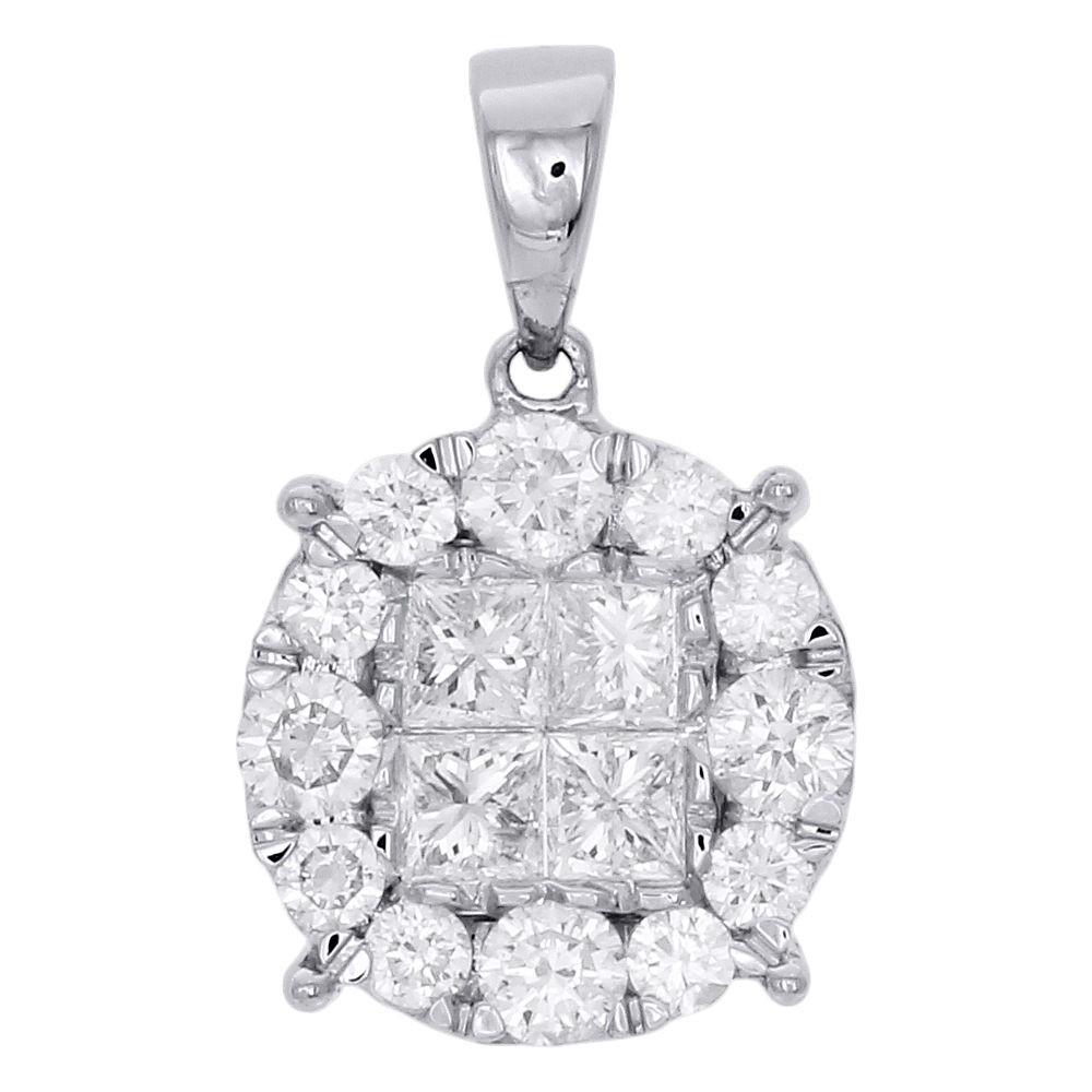 - 14K White Gold Quad Princess Diamond Soleil Ladies Circle Pendant 2 CT.