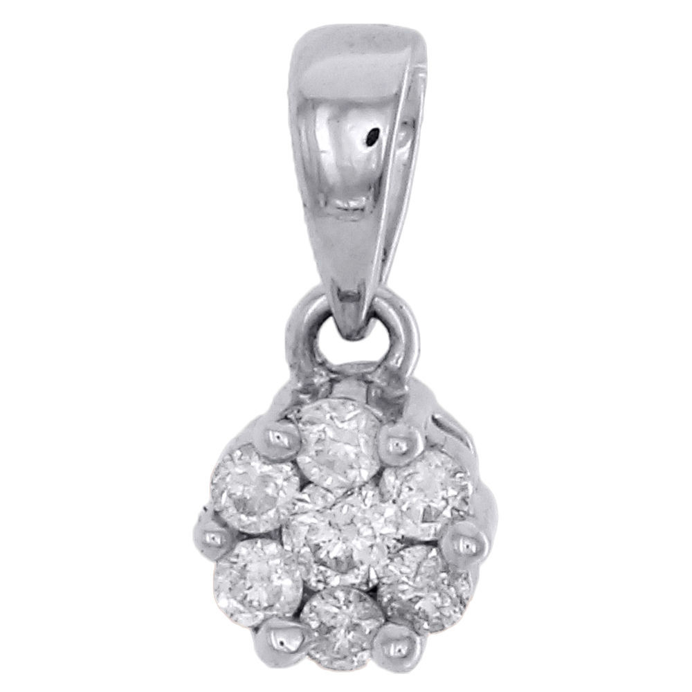 - 14K White Gold Real Diamond Flower Pendant Mini Ladies Necklace 0.25 CT.