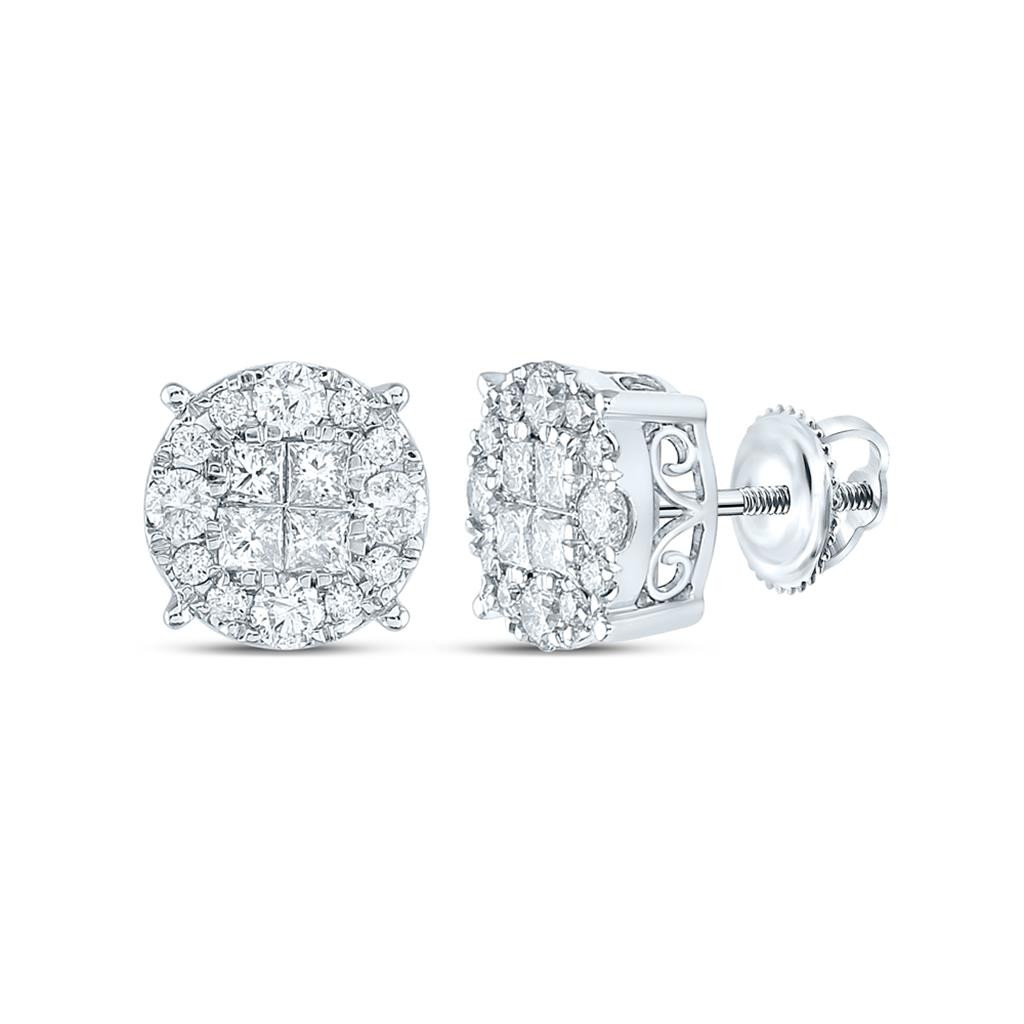 14K White Gold Real Princess Diamond Unisex Cluster Round Stud Earrings 1.50 CT