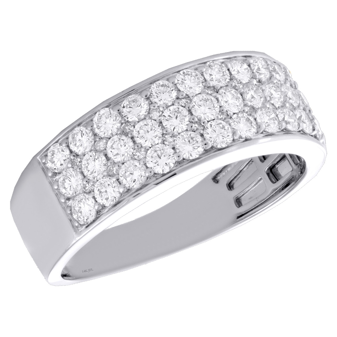 14K White Gold Round Diamond 3 Row Statement Wedding Band 8mm Pave Ring 1.37 CT.