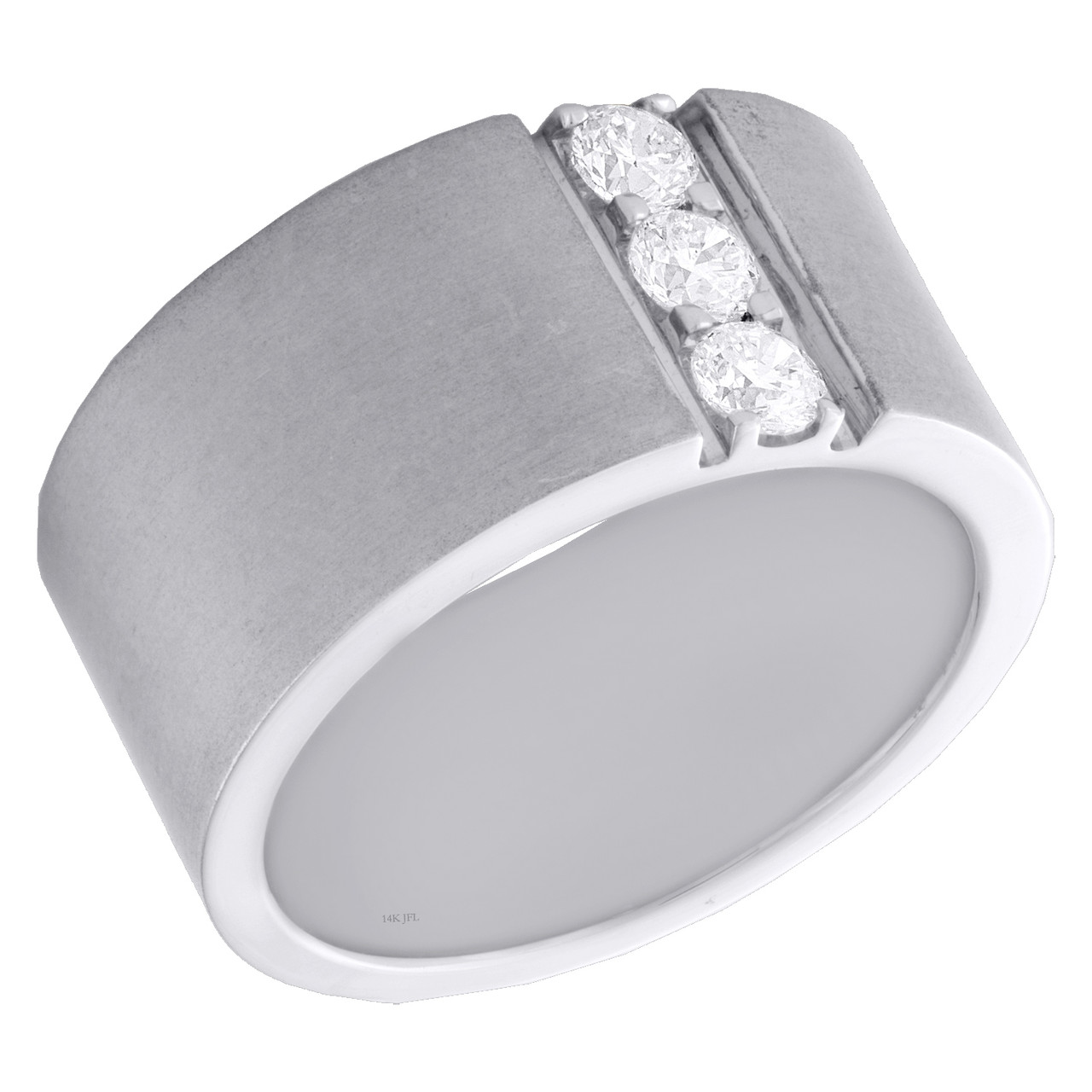 14K White Gold Round Diamond 3 Stone Matte Wedding Band 11mm Wide Ring 1/2 CT.