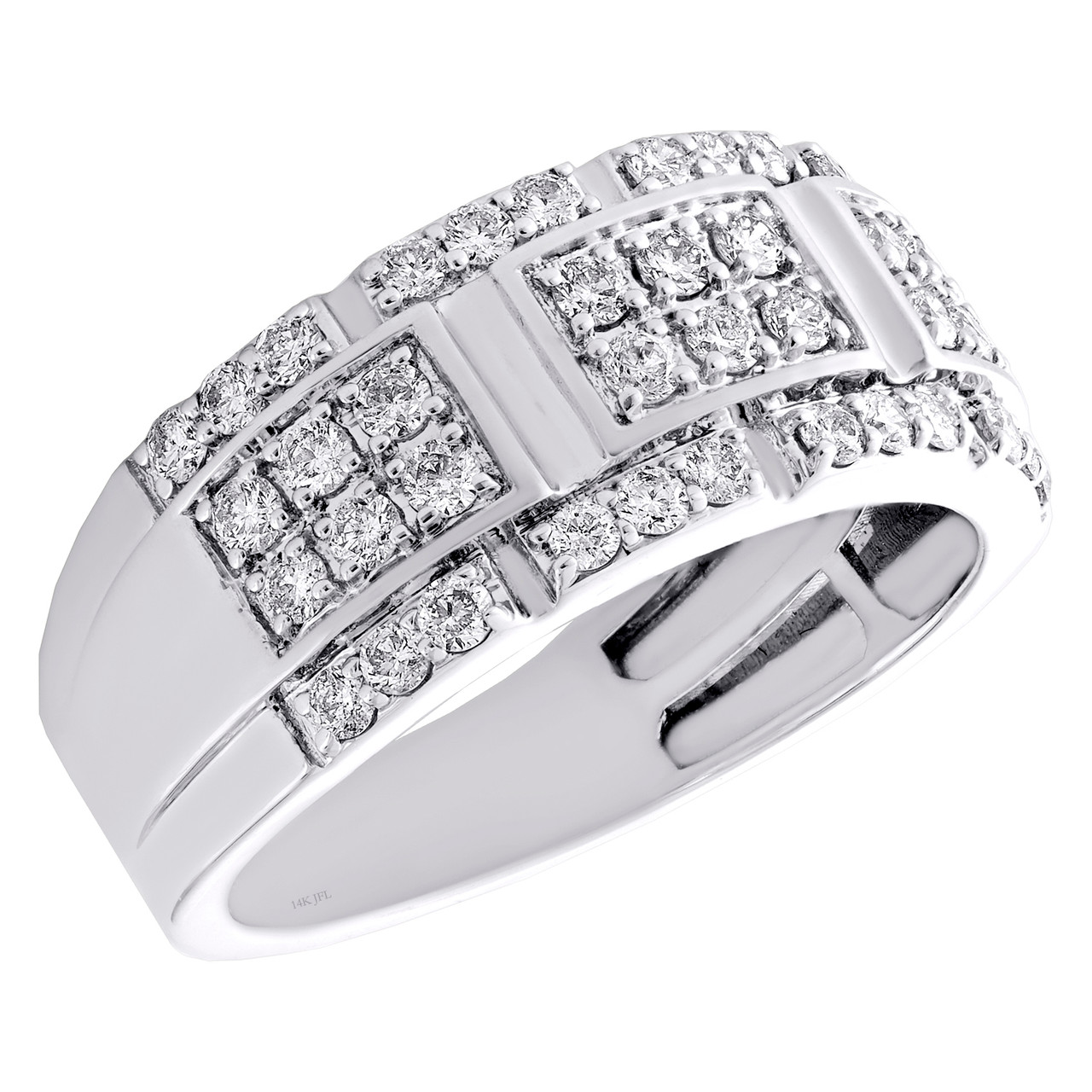 (6.7 gr. of 14K White Gold | Total Carat Weight: 1 ct. t.w. of White Diamonds | Band Width (shank): 10mm | Clarity: I1 - I2 | Color: H - I | Men's Round Cut Diamond Wedding Band Anniversary Ring)