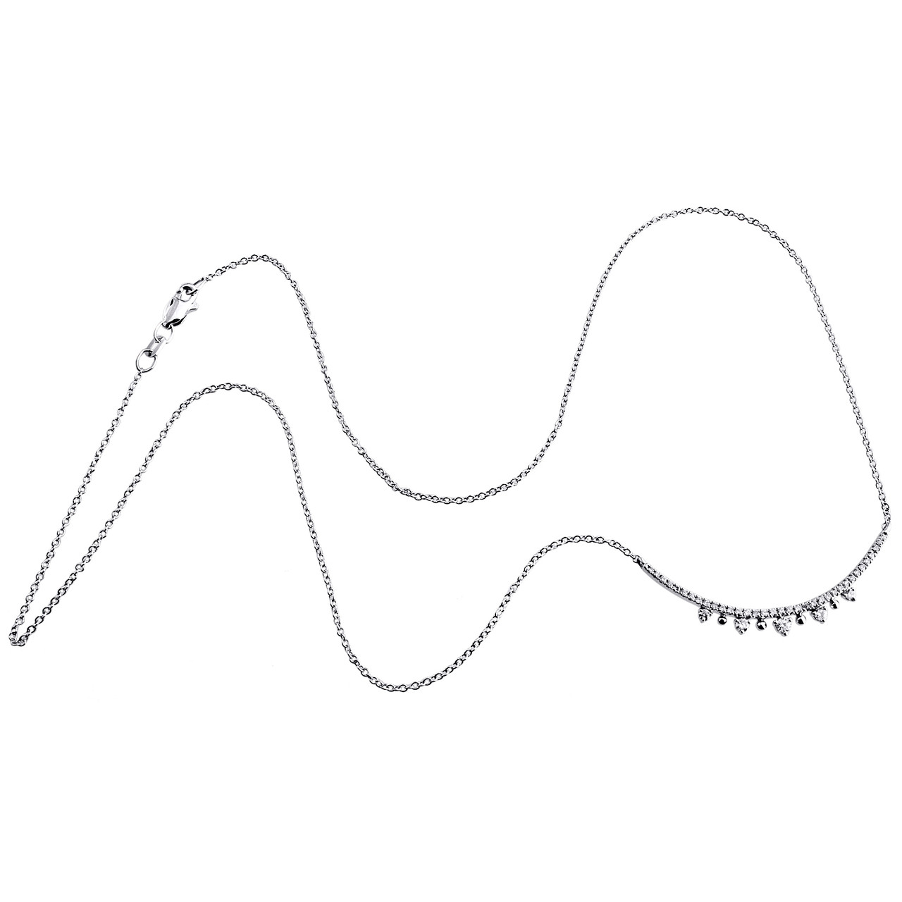 14K White Gold Round Diamond Curved Bar Necklace 16" Cable Link Chain 0.25 CT.