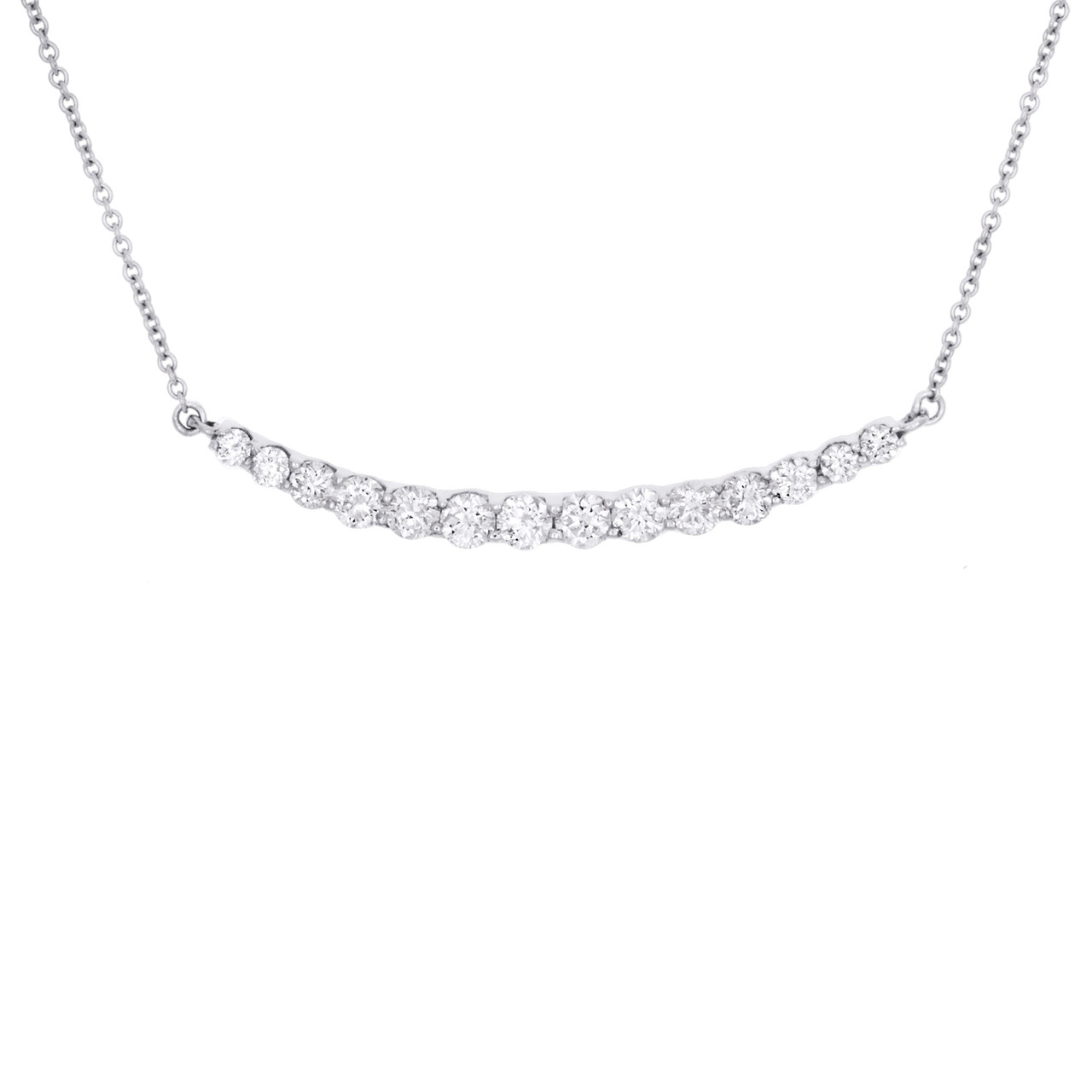 (2.5 gr. of 14K White Gold | Total Carat Weight: 0.75 ct. t.w. of White Diamonds | Necklace Length: 18" | Necklace Width: 1mm | Charm Length: 0.20" | Charm Width: 1.30" | Thickness: 3mm | Clarity: SI2 - I1 | Color: G - H | Women's Natural Round Cut Diamond Prong Set Curved Bar Statement Necklace)