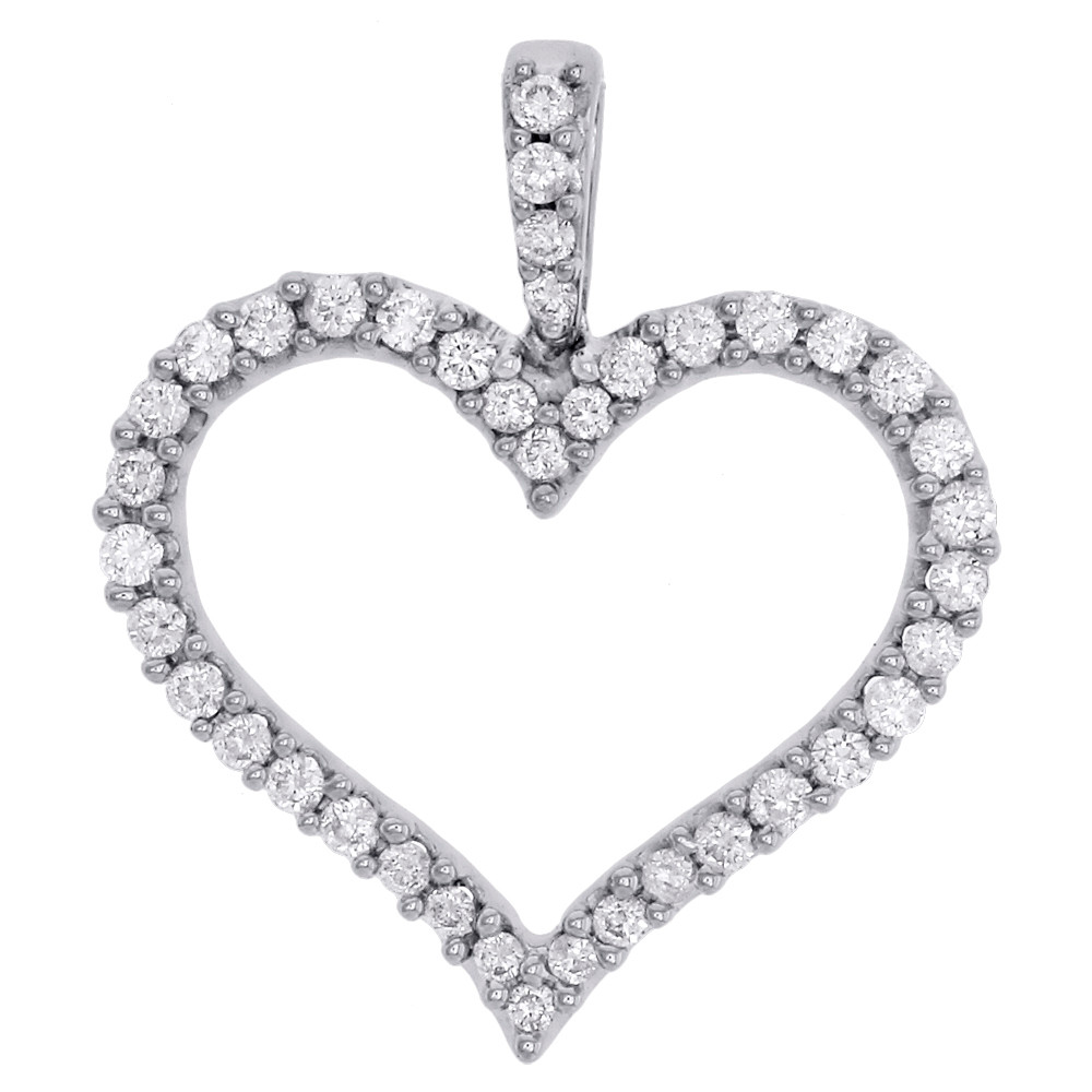 14K White Gold Round Diamond Cut Out Frame Heart Pendant Ladies Charm 0.50 Ct.