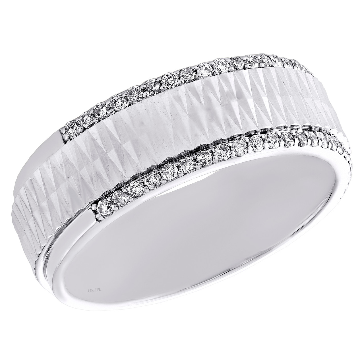 14K White Gold Round Diamond Hammered Texture Wedding Band 8mm Ring 1/3 CT.