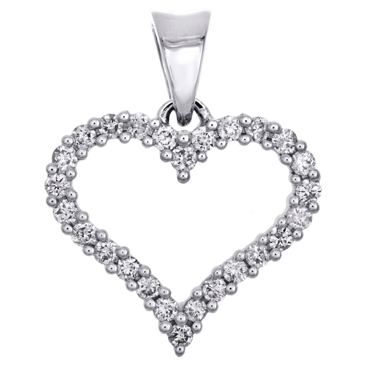 (1.10 gr. 14K White Gold | Total Weight: 0.25 ct. t.w. of White Diamonds | Length: 0.70" (including bail) | Width: 0.55" | Thickness: 3mm | Clarity: I1 - I2 | Color: H - I | Women's Genuine Round Cut Diamond Love & Hearts Frame Cut Out Statement Pendant Prong Set Charm)