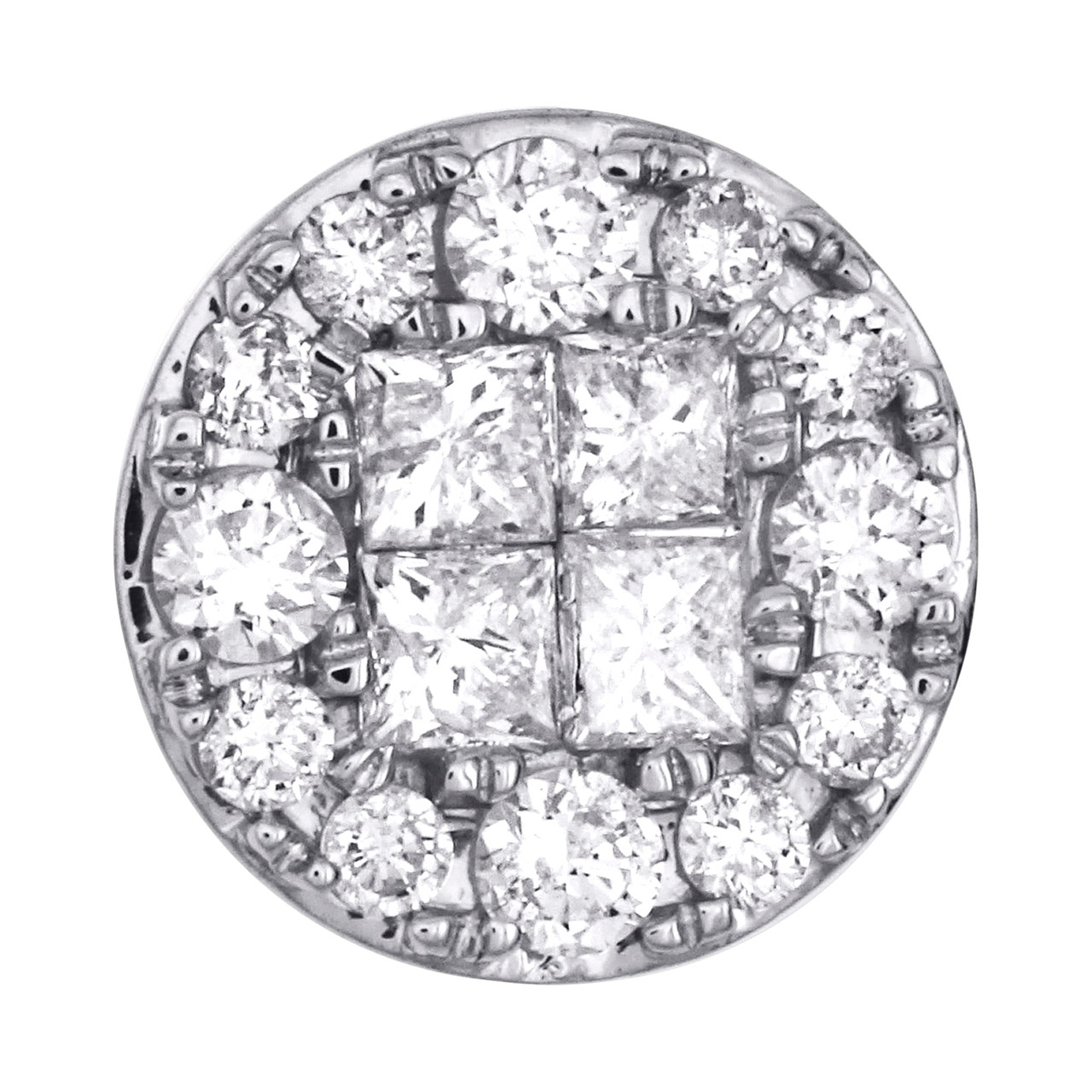 (1 gr. 14K White Gold | Total Weight: 0.50 ct. t.w. of White Diamonds | Length: 0.40" | 10.25mm | Width: 10.25mm | Thickness: 3.50mm | Clarity: SI2 - I1 | Color: G - H | Women's Genuine Diamond Circle Frame Soleil Collection Round and Princess Cut Pendant Statement Charm)