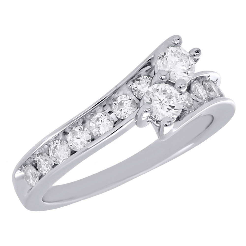 14K White Gold Two Stone Diamond Engagement Ring Love Friendship Bypass 1.02 Ct