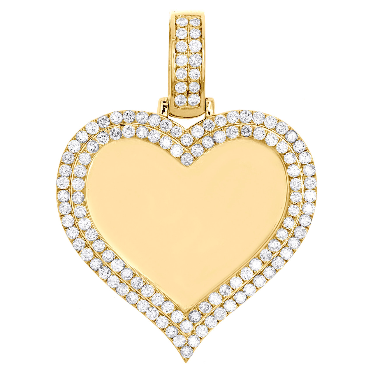 (15.4 gr. of 14K Yellow Gold | Total Carat Weight: 2.50 ct. t.w. of White Diamonds | Length: 1.85" (Including Bail) | Width: 1.40" | Clarity: SI2 - SI3 | Color: G - H | Unisex Genuine Round Diamond Double Row Heart Memory Picture Frame Pendant Statement Charm)