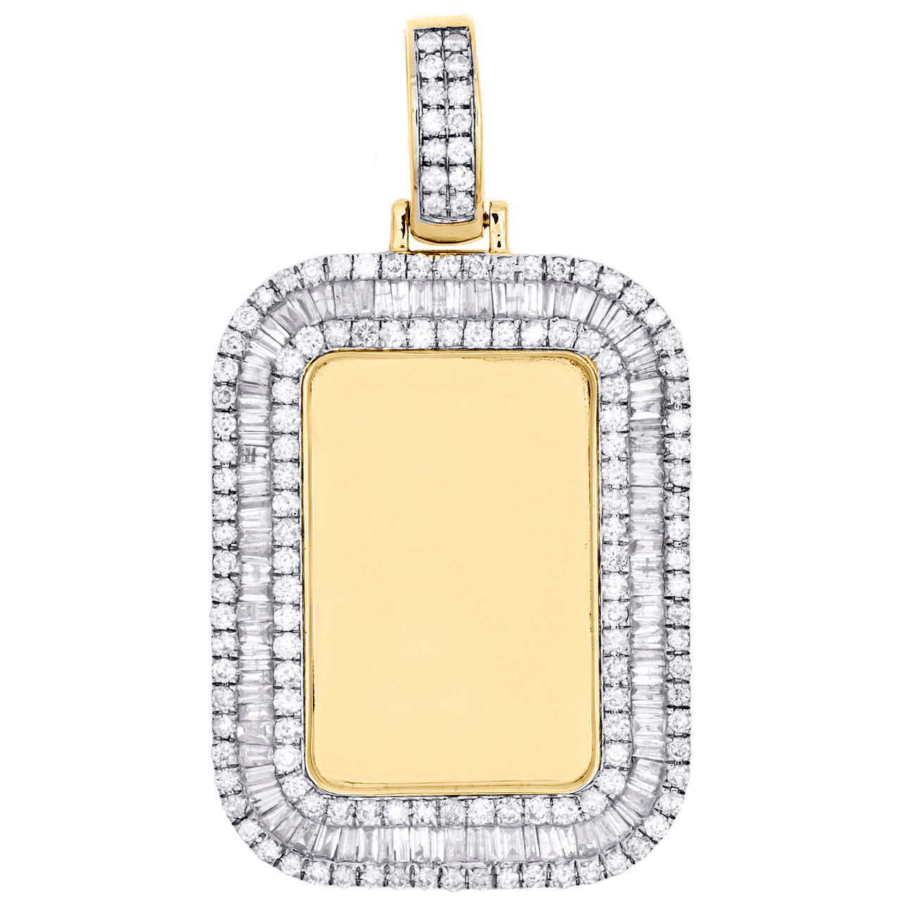 - 14K Yellow Gold Baguette Diamond Dog Tag Memory Frame Picture Pendant 2.50 CT.