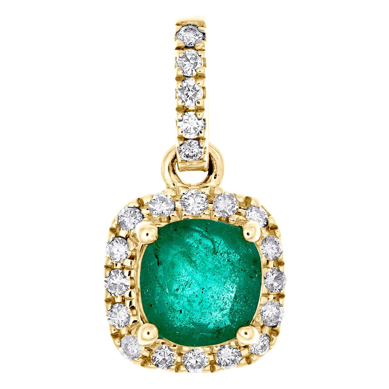 (0.9 gr. of 14K Yellow Gold | Total Carat Weight: 0.75 ct. t.w. of White Diamonds & Green Emerald| Length: 0.65" (including bail) | Width: 0.30" | Thickness: 5mm | Diamond Clarity: I1 - I2 | Diamond Color: H - I | Gemstone Clarity: AA | Women's Genuine Round Diamond Fancy Cushion Frame Halo Design Natural Green Emerald Gemstone Pendant Charm)