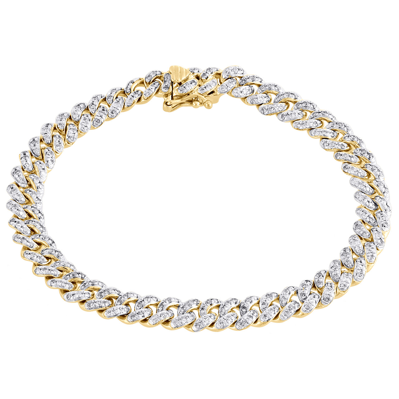 A new sophisticated and elegant look added to our Diamond Bracelet collection is this 3D Miami Cuban Puffed Link genuine diamond link. Made in real 14K Yellow Gold and natural diamonds. Sturdy frame for durability and comfort fitting. All round cut diamonds in pave setting, making the overall appearance larger and lustrous. This statement piece will make a great addition to your jewelry collection. All the diamonds on this bracelet are of equivalent color and clarity, giving this bracelet a comparable shine and luster throughout. This bracelet has a box-clasp with safety latch for secure wear. This bracelet is 6.50mm wide. and weighs approx. 17.6 grams of gold.