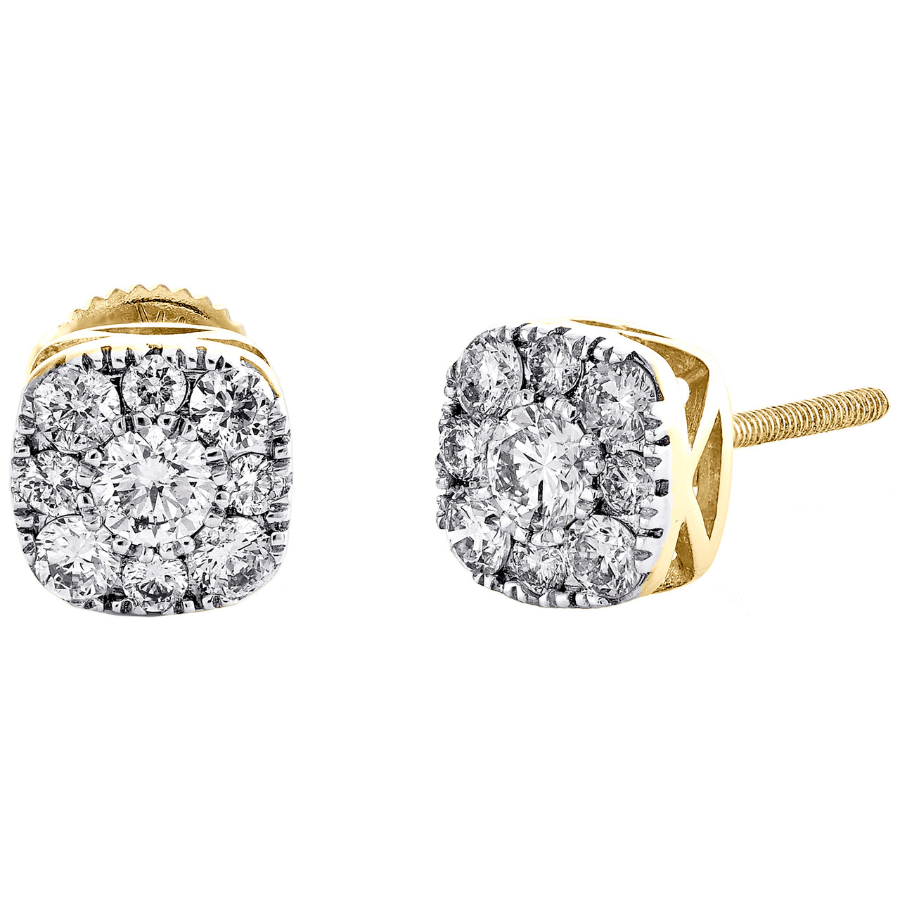 (1.9 gr. of 14K Yellow Gold | Total Carat Weight: 0.75 ct. t.w. of White Diamonds | Width: 7mm | Thickness: 4mm | Clarity: SI2 - I1 | Color: H - I | Unisex Genuine Round Diamond Cushion / Square Frame Statement Studs Prong Earrings)
