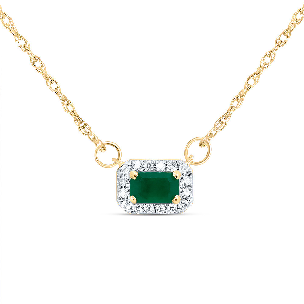 - 14K Yellow Gold Emerald & Diamond Women's Rectangle Halo 18" Necklace 0.45 CT
