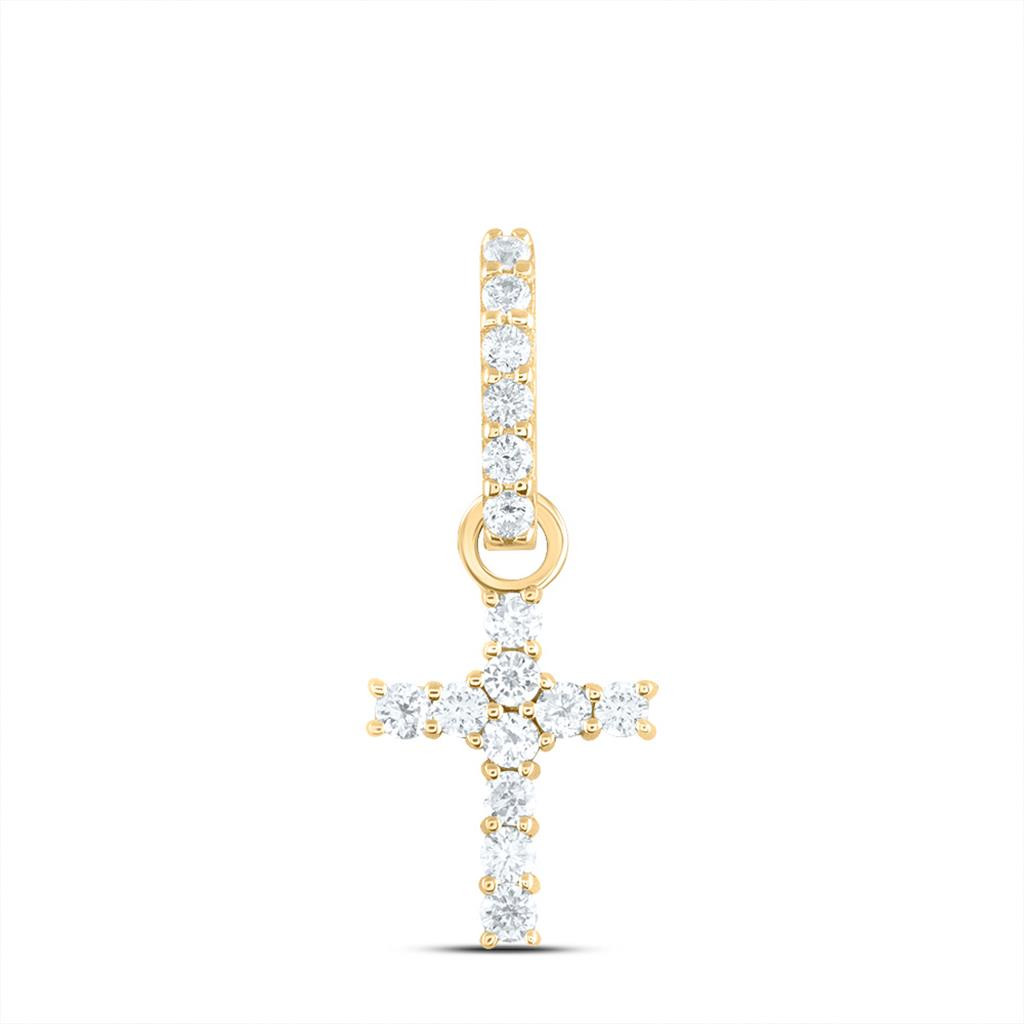 (1 gr. of 14k Yellow Gold | Total Carat Weight: 0.20 ct. t.w. of White Diamonds | Length: 0.80" (including bail) | Width: 0.30" | Clarity: I1 - I2 | Color: H - I | Women's Earth Mined Natural Diamonds Cross Religious Statement Pendant)