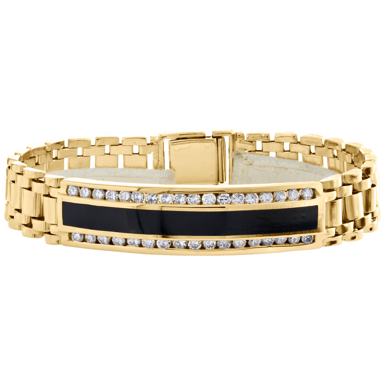 - 14K Yellow Gold Mens 11mm Onyx ID Diamond Channel Set 7.50" Bracelet 1.26 CT.