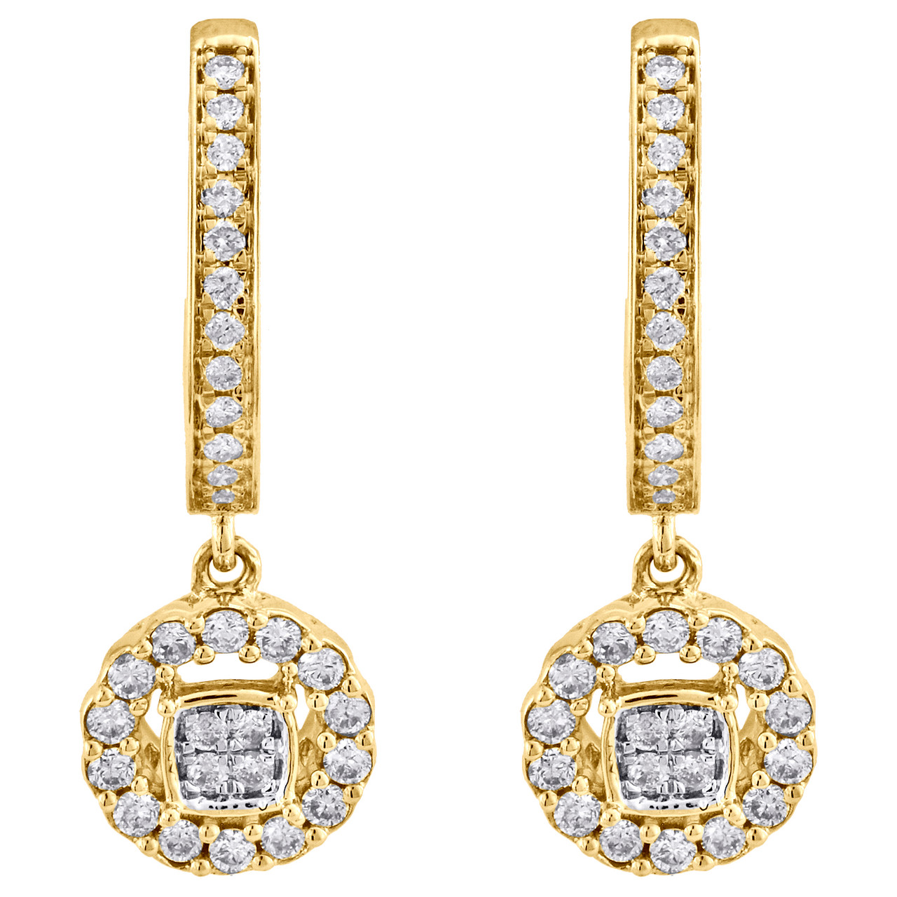 (4.20 gr. of 14K Yellow Gold | Total Carat Weight: 0.50 ct. t.w. of White Diamonds | Length: 1" | Width: 0.50" | Clarity: SI2 - I1 | Color: H - I | Women's Genuine Round Diamond Fancy Cluster Hoop Cocktail Danlge / Drop Earrings)