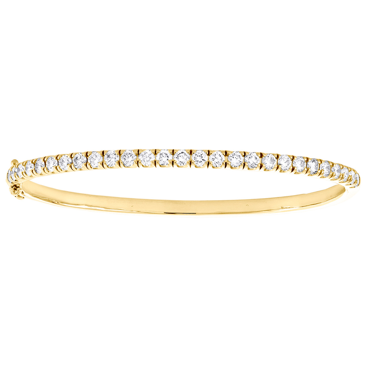 14K Yellow Gold Round Diamond Prong Set Bangle 3mm Statement Bracelet 2.20 CT.