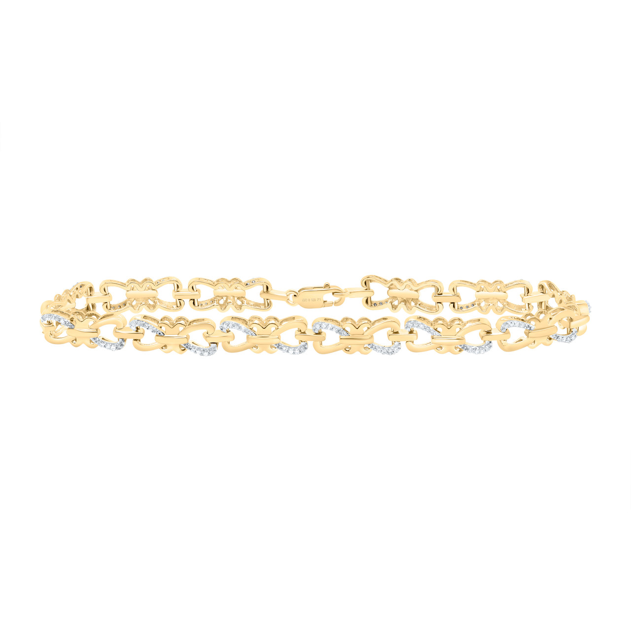 - 925 Gold Plated Diamond 5mm Heart Infinity & X Ribbon Link Bracelet 1/4 CT | 7"