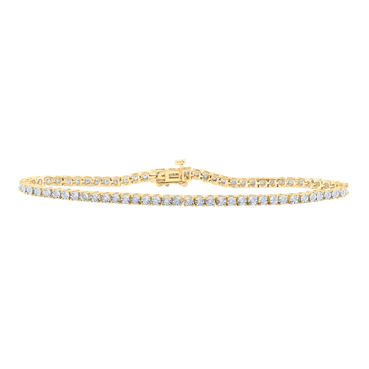 - 925 Gold Plated Real Diamond 4mm 1 Row Fanuk Round Tennis Bracelet 1/3 CT | 7"