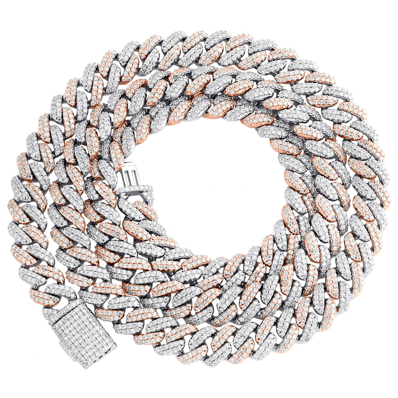 - 925 Rose Gold Plated Two Tone Moissanite 8mm 2 Row Miami Cuban 22" Chain 12.5 CT
