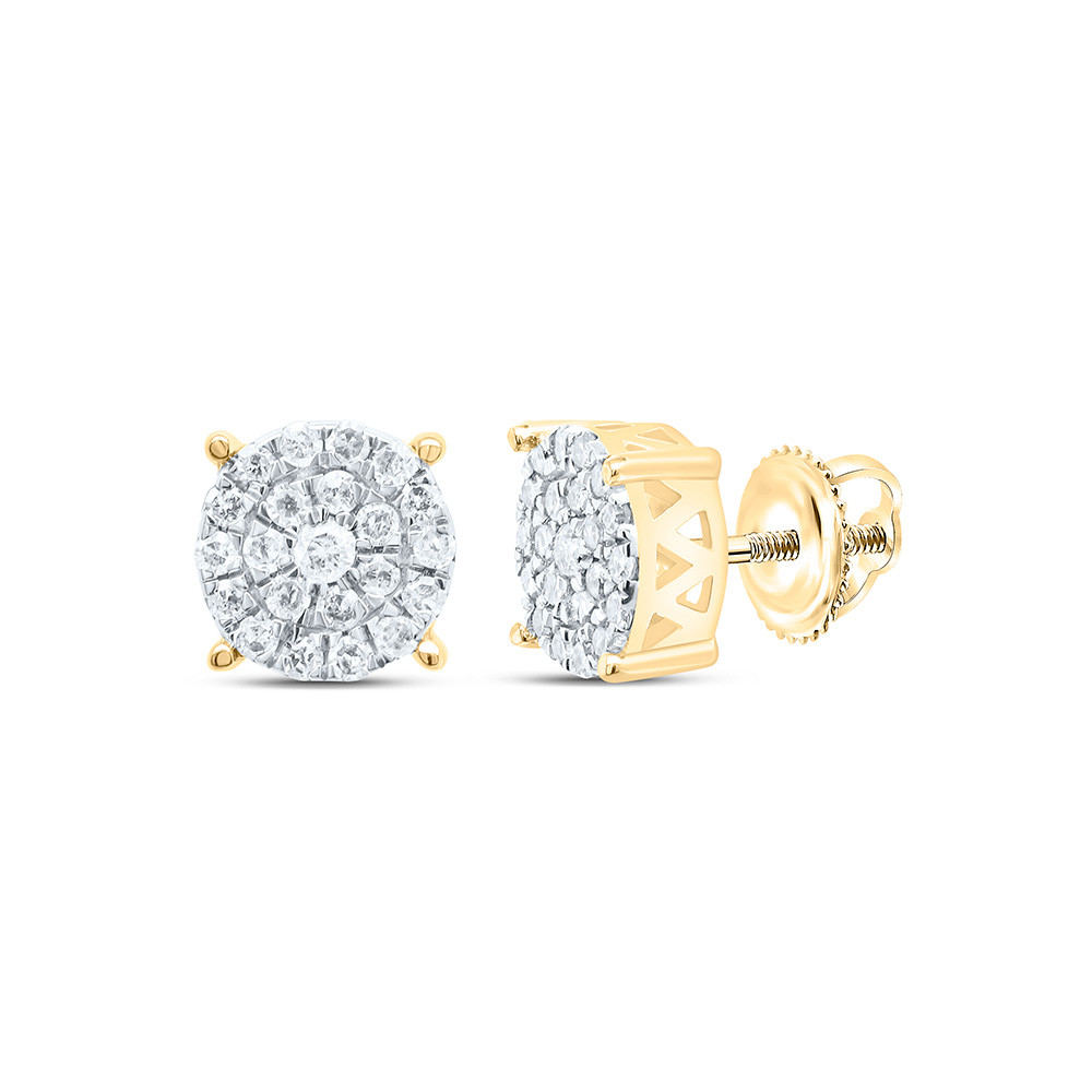 (1.35 gr. of 925 Yellow Gold Plated | Total Carat Weight: 0.25 ct. t.w. of Diamond | Length: 6mm | Width: 6mm | Clarity: I1 - I2 | Color: H - I | Unisex Adult Genuine Diamond Round Cluster Statement Stud Earrings)