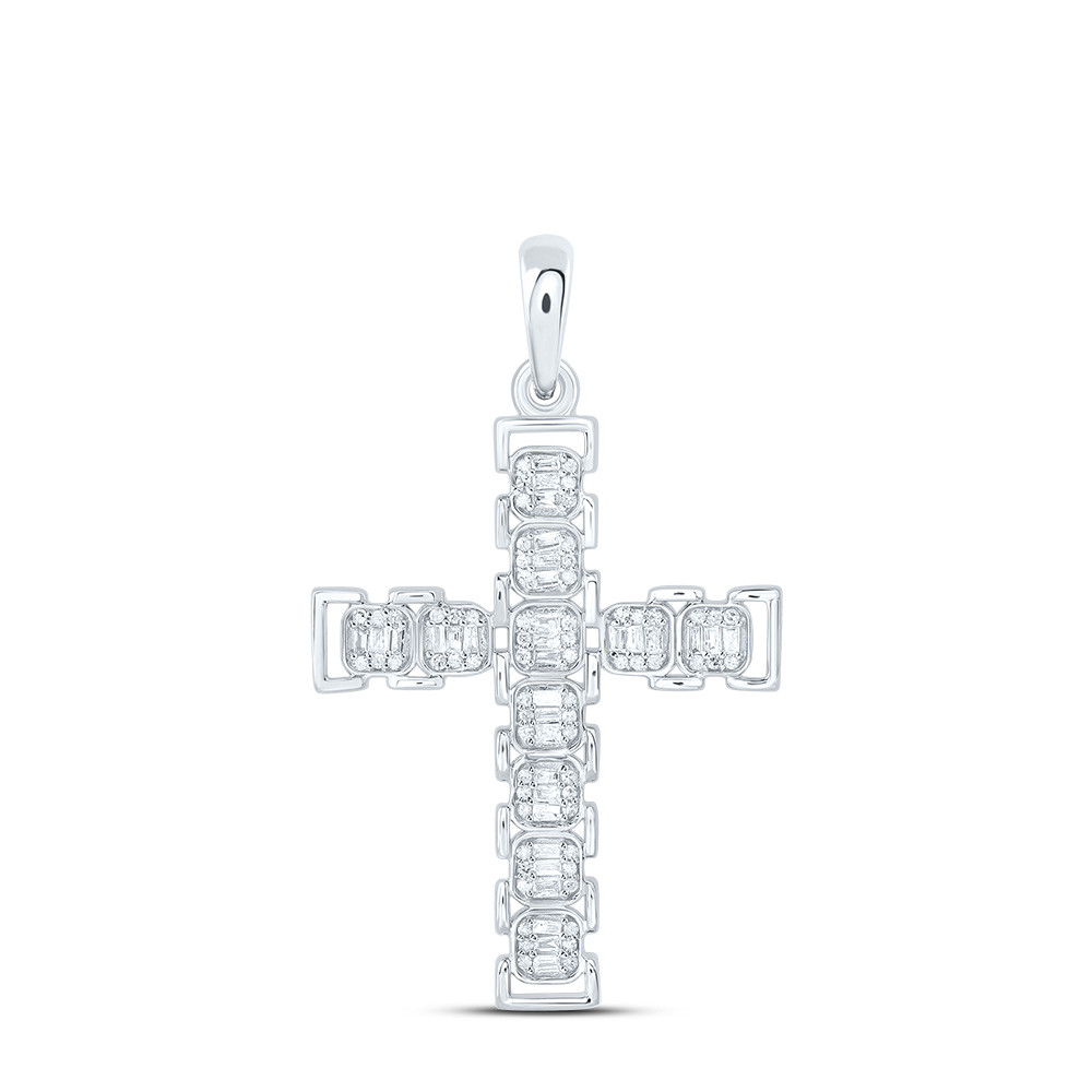 - 925 Silver Gold Plated Genuine Baguette Diamond Rectangle Cross Pendant 1/3 CT