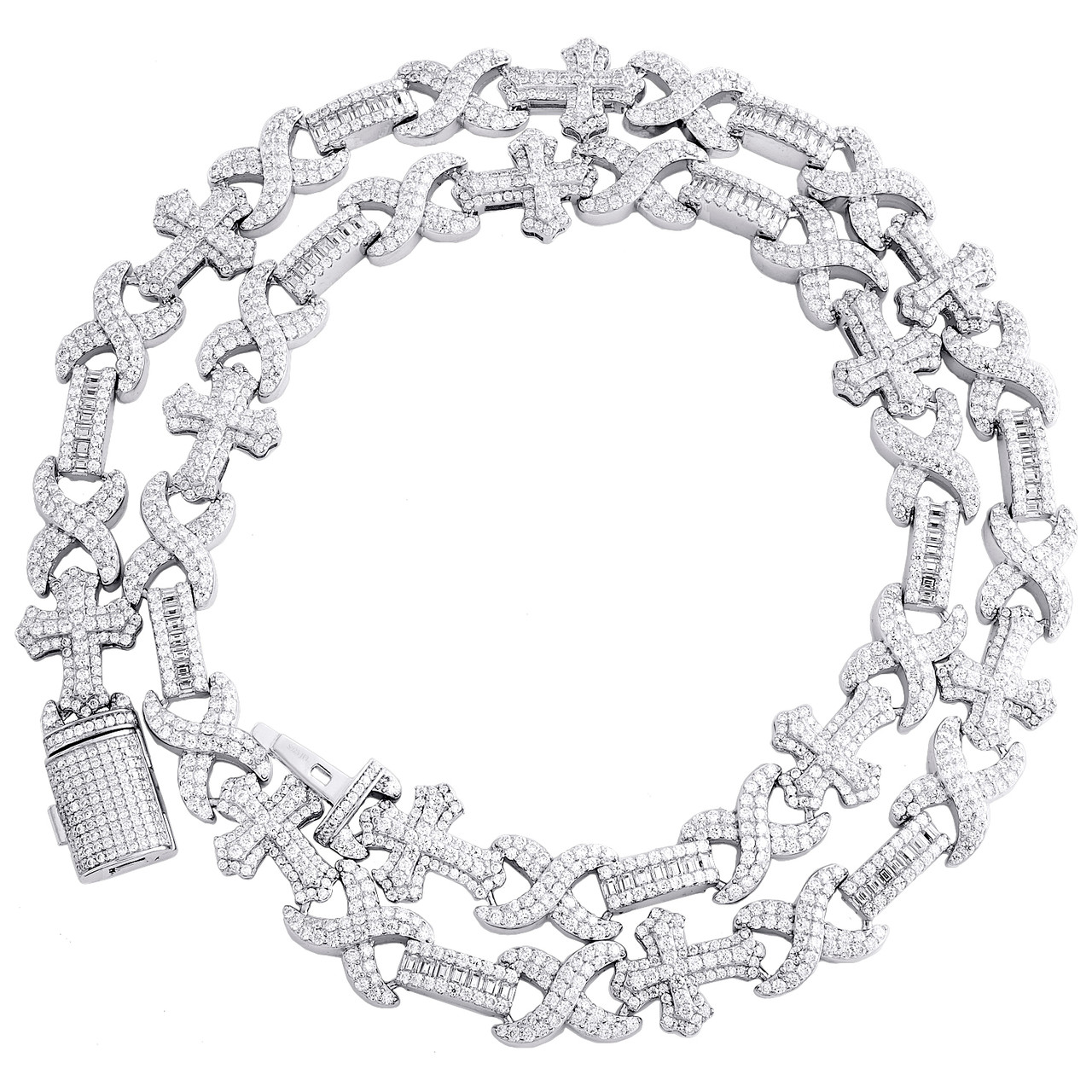 - 925 Sterling Silver Baguette Moissanite 13mm Infinity & Cross 22" Chain 18.88 CT