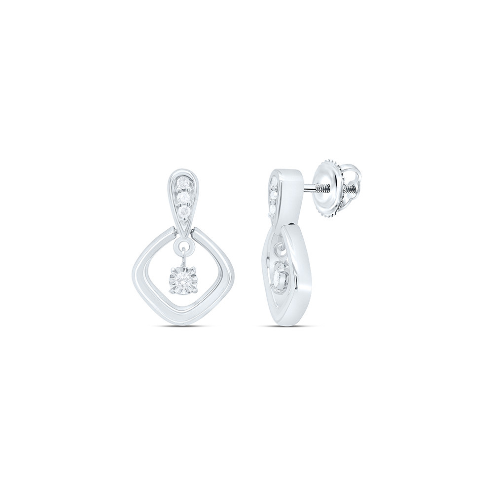 - 925 Sterling Silver Diamond Floating Circle in Square Dangler Earrings 1/10 CT
