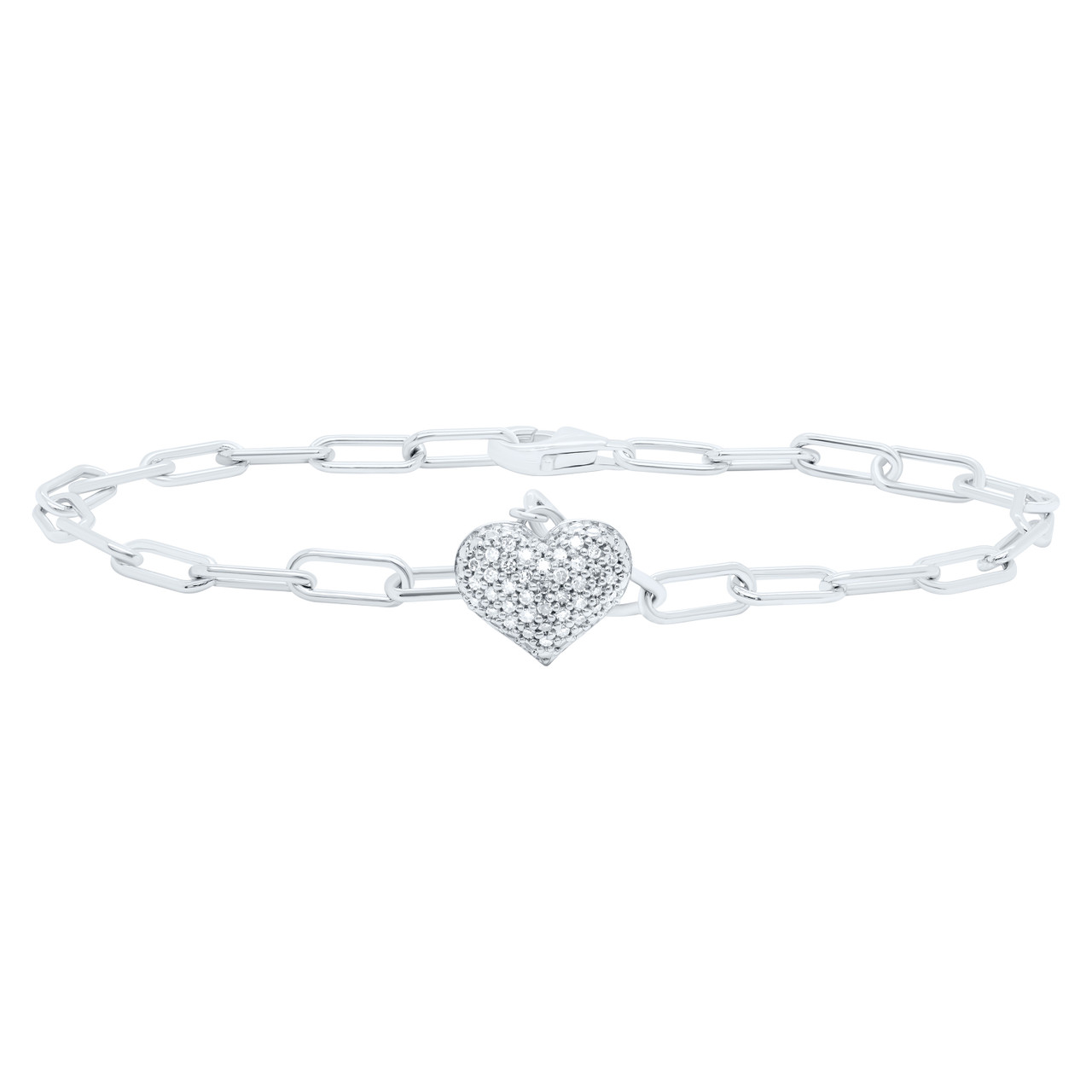 925 Sterling Silver Diamond Women's Rectangle & Puff Heart Bracelet 1/5 CT | 7"