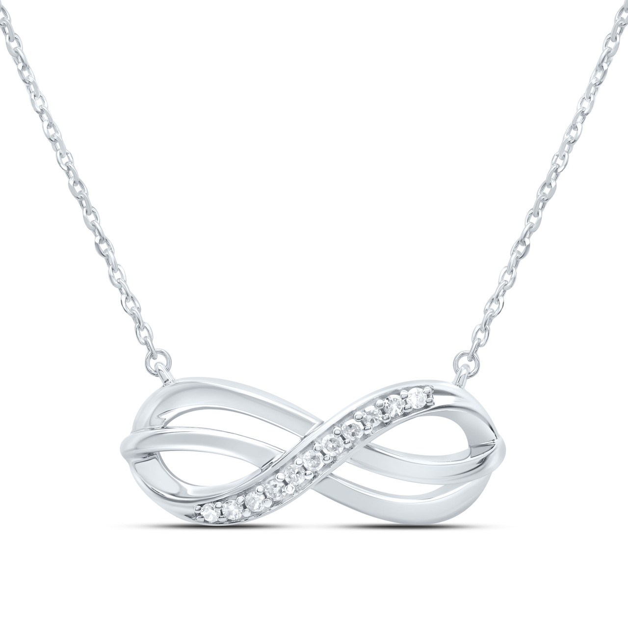 - 925 Sterling Silver Diamond Women's Swirling Infinity Charm 18" Necklace 1/10 CT
