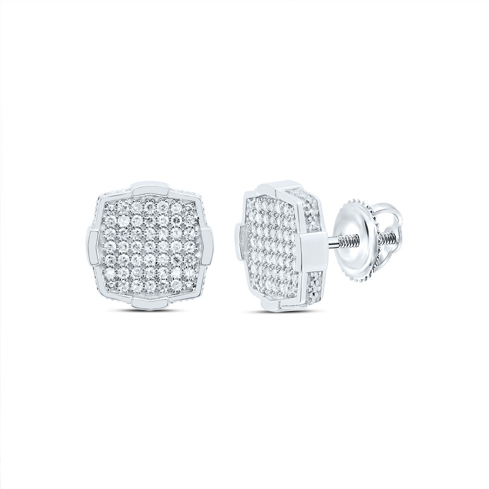925 Sterling Silver Genuine Diamond 10.5mm Cluster Cushion Stud Earrings 1/3 CT