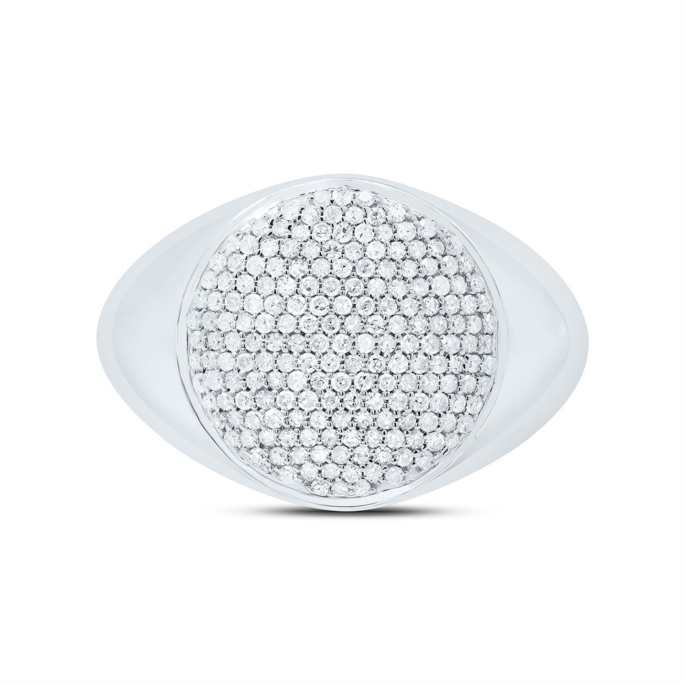 (6.16 gr. of 925 Sterling Silver | Total Carat Weight: 0.66 ct. t.w. of White Diamonds | Width: 17mm | Clarity: I1 - I2 | Color: H - I | Men's Round Cut Diamond Domed Oval Stackable Pinky Ring Ring)