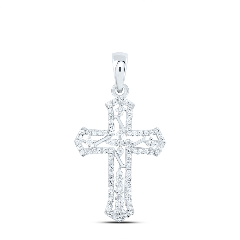 - 925 Sterling Silver Genuine Diamond Geometric Open Pointed Cross Pendant 1/4 CT